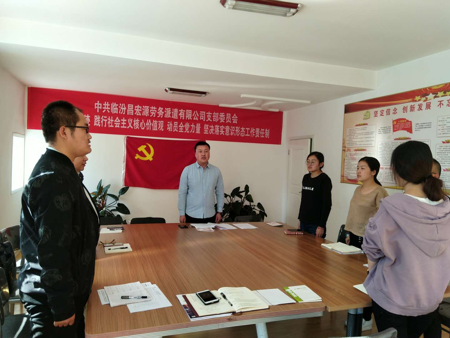 2018年10月10日在臨汾昌宏源勞務(wù)派遣有限公司黨支部三樓黨支部辦公室進行了中共臨汾市堯都區(qū)非公有制經(jīng)濟組織委員會文件關(guān)于組織開展10月份主題黨日活動的學習。